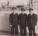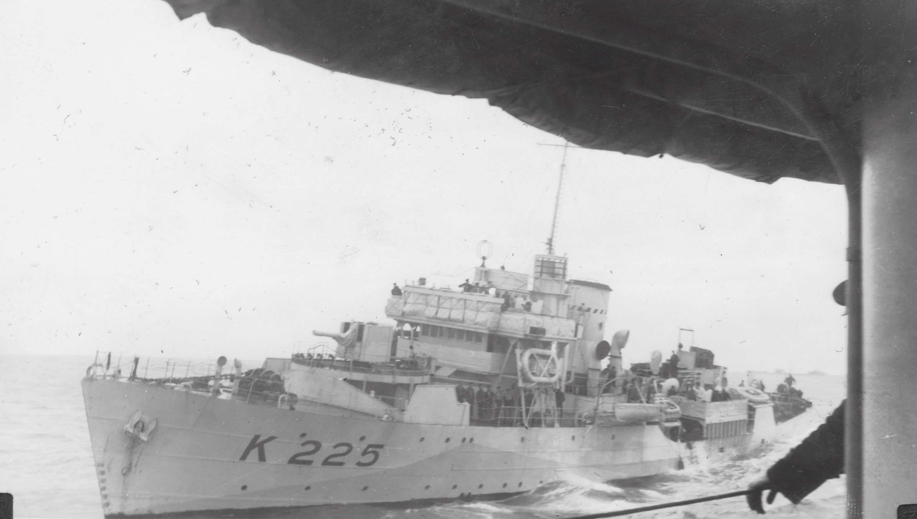 (KIT006) HMCS KITCHENER K225 (KIT007) HMCS KITCHENER K225 at anchor, Sydney, NS c1945 // From the wartime photo collection of Raymond Burton // This photo is not for reproduction, distribution or sale // Copyright Elizabeth Wagner (KIT008) Sunday morning divisions at sea on HMCS KITCHENER K225 // DND- RCN photo (KIT009) Brief article on corvettes during the war // A censor had blacked out the ship's pendant number but left her signal flags which indicate she is HMCS KITCHENER K225 // From the collection of J. Vincent Wesley, CPO, RCNVR // Courtesy of Marilynn Taylor (KIT010) Three Corvette Commanding Officers in Gibraltar - 08 Mar 1943 // Right to Left: Lt Wilfred Joseph (Red) McIsaac, RCNVR, HMCS PRESCOTT, LCdr W Evans, RCNVR, HMCS KITCHENER, and Lt LR Pavillard, RCNR, HMCS CAMROSE // Source: Imperial War Museum // https://www.iwm.org.uk/collections/item/object/205148542