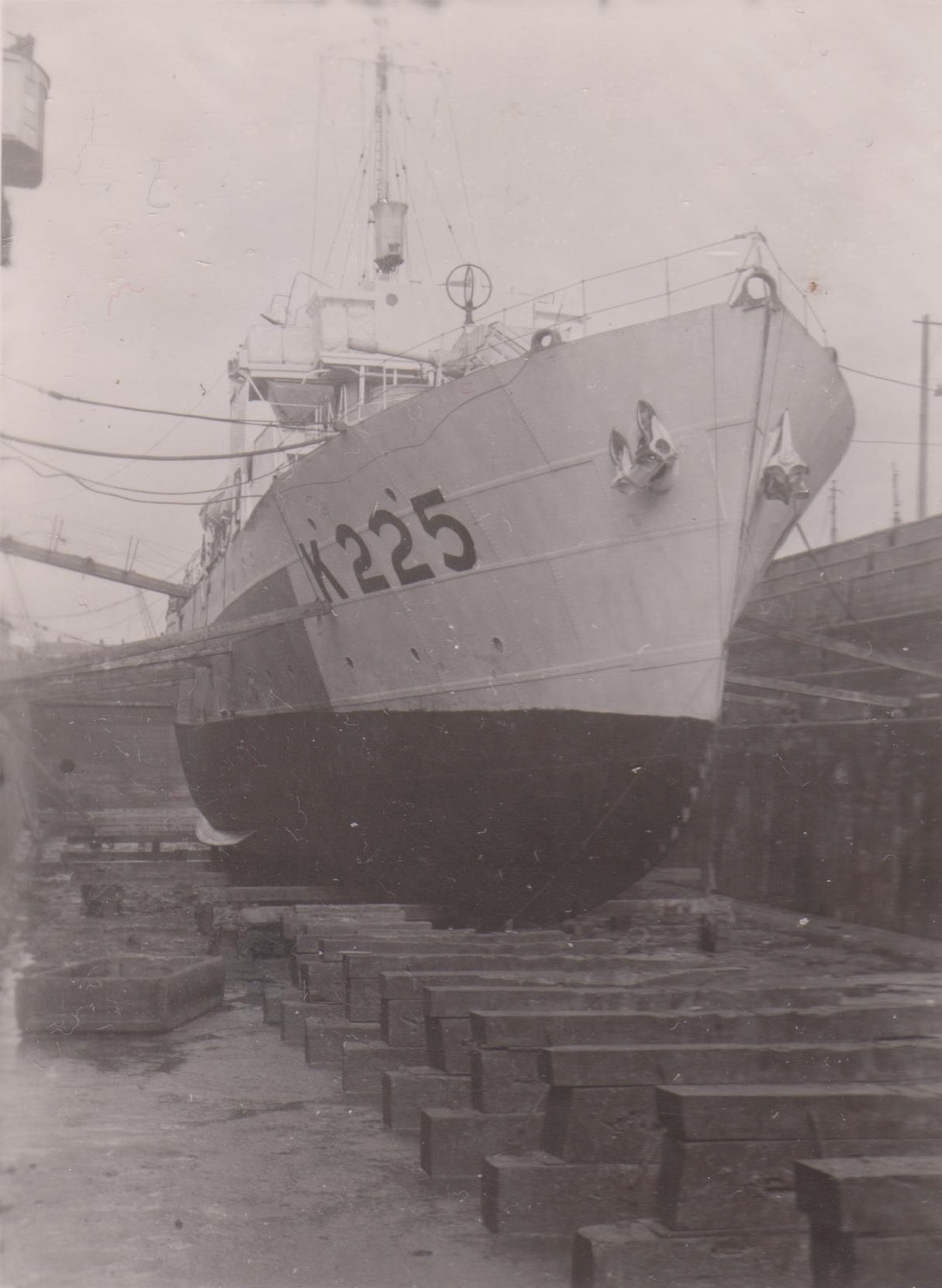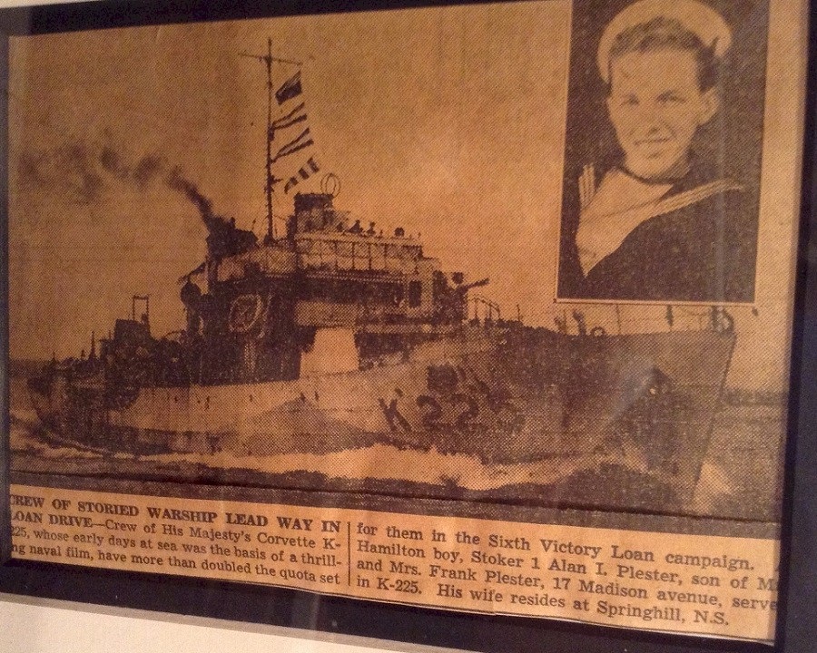 (KIT001) HMCS KITCHENER K225 // DND / RCN Photo Negative # GM1108-R (or GN1108-R) (KIT002-KIT003) HMCS KITCHENER K225 on convoy duty - 1943 // From the collection of Duce, Rex // Courtesy of Melanie Brough (KIT004) Newspaper article on HMCS KITCHENER K225 // From the collection of Alan Plester // Courtesy of Alana Davis (KIT005) HMCS KITCHENER K225 with signatures around the photo