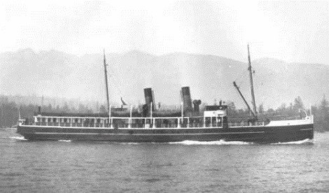 Built by Tranmere, U.K, for a Blackpool firm and originally named Deerhound, she was acquired and renamed by the Postmaster-General's department in 1907. LADY EVELYN's new function was to meet transatlantic mail steamers in the Gulf of St. Lawrence and take off the mail for transfer to trains. She was commissioned in the RCN as a patrol vessel from Jun 1917 to 1919, and survived in commercial service on the west coast until shortly before the Second World War. Her armament was 1-12pdr gun. The Howe Sound Navigation Co. brought the screw steamer LADY EVELYN Evelyn a former Canadian mail packet on the St. Lawrence, to Vancouver in 1921 for operation with Brittania. In 1923 she was bought by the Union Steamship Company of British Columbia and remained with them until 1936, when she was scrapped.