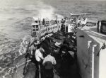 (WHV068) After gun deck and AA gun tubs of HMCS LA HULLOISE K668 seen from the crow's nest (WHV069) Fo'c's'le of HMCS LA HULLOISE K668 see from the crow's nest (WHV070) Unknown destroyer passing by HMCS LA HULLOISE K668 (WHV071) Looking aft from the starboard AA gun tub on HMCS LA HULLOISE K668. The after gun deck and depth charge rails visible (WHV072) Sailors relaxing on the after gun deck of HMCS LA HULLOISE K668