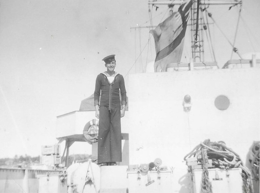 George Learn (left) and Bill Mitchell (Mitch) on HMCS LA HULLOISE K668 From the collection of William (Bill / Mitch) Mitchell, RCNVR Courtesy of Bill Mitchell