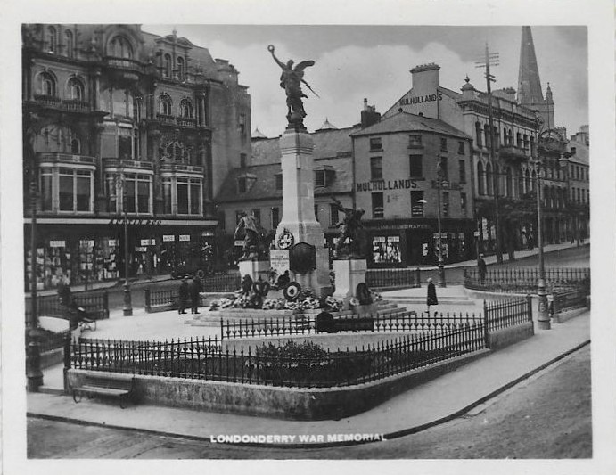 Postcards from Londonderry (WHV120) Diamond War Memorial, Londonderry (WHV121) Columb's Cathedral, Londonderry (WHV122) Shipquay Street, Londonderry (WHV123) Magazine Gate, Londonderry (WHV124) View on River Foyle, Londonderry From the collection of William (Bill) Vickers, Able Seaman, RCNVR Courtesy of Janet Ferrey