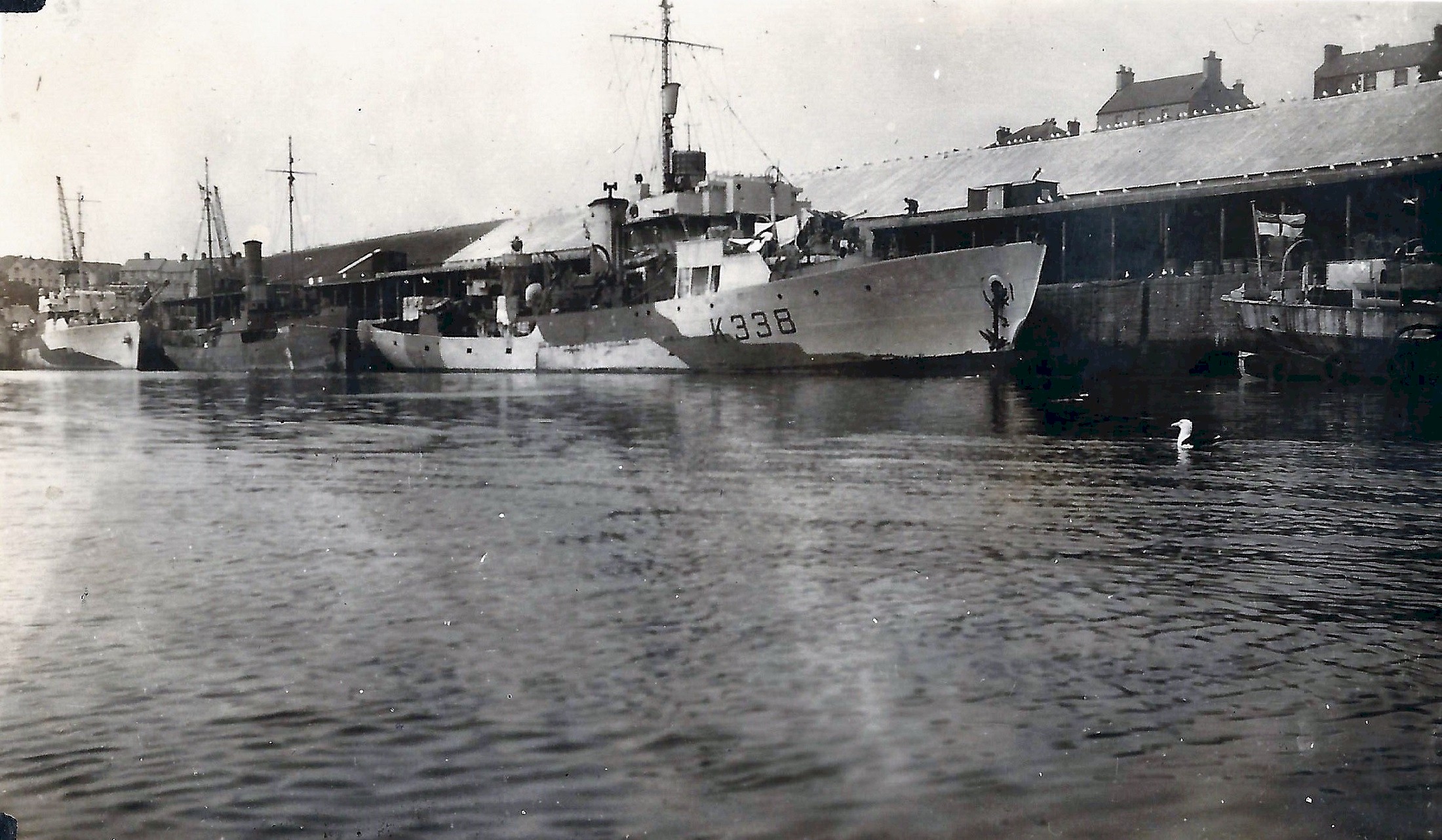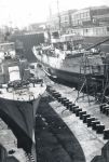 K338 (right) in dry dock at Saint John, NB circa spring 1945