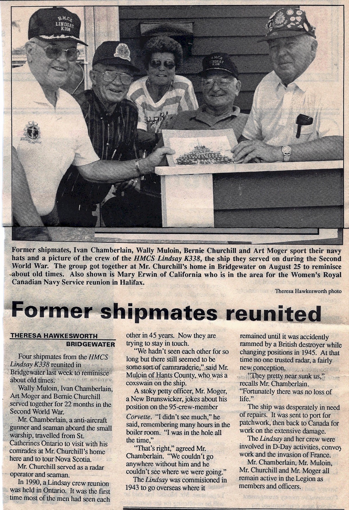 was a gunner and seaman on board HMCS LINDSAY during WW2. Mr. Chamberlain organized