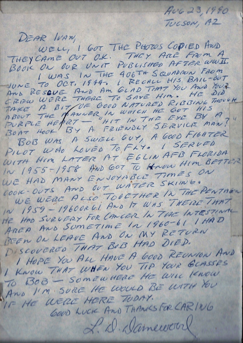 friend of his and fellow pilot, L.D. Damewood.