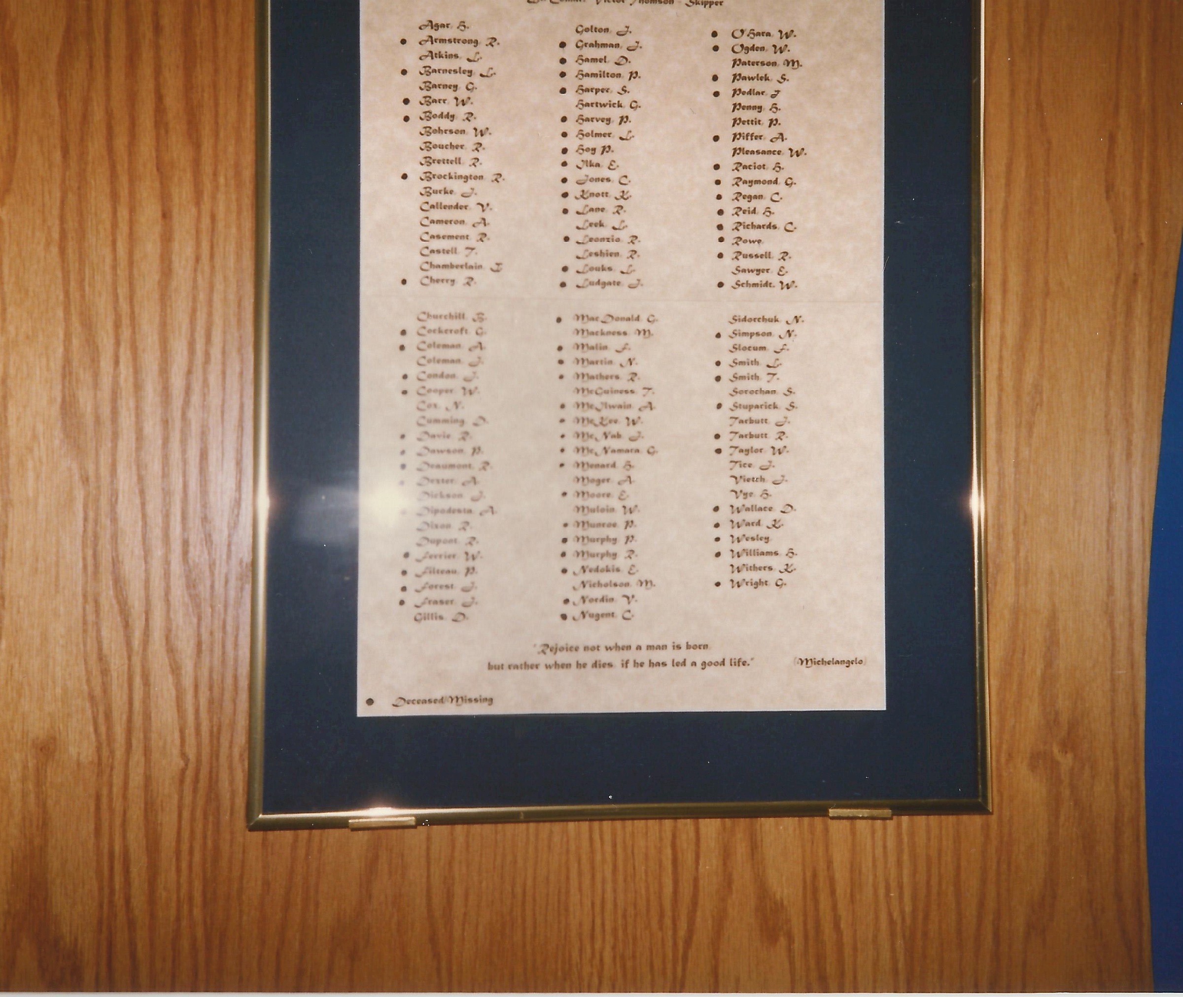 In memory of those who have crossed the bar