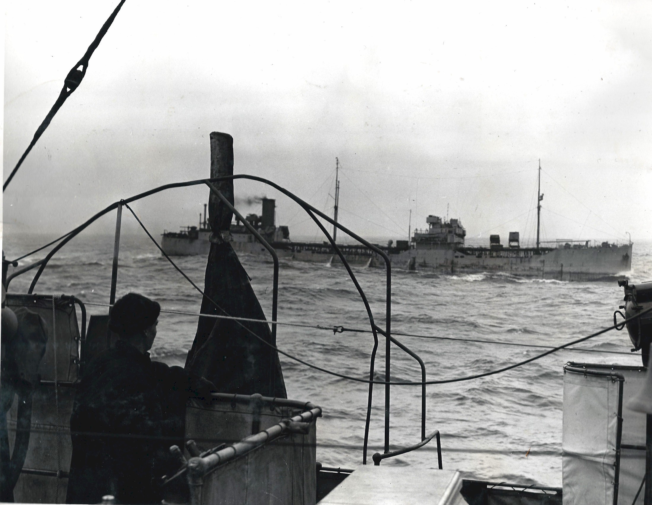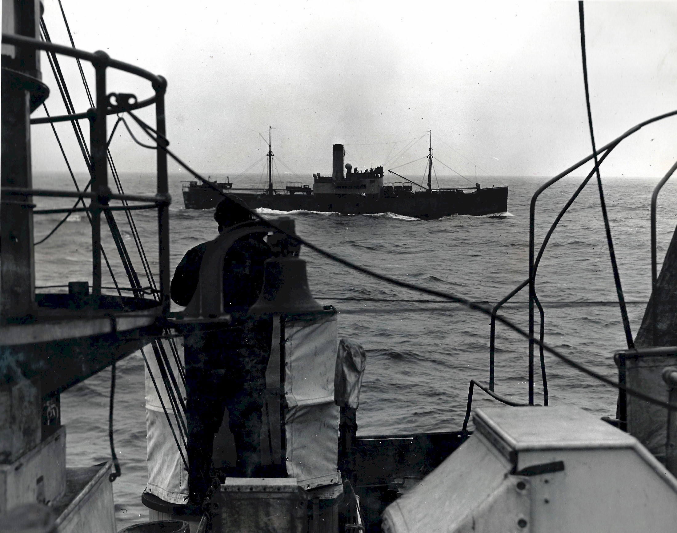 (Senior Officer), and HMCS LINDSAY, last in the column - HMCS LINDSAY was involved in a collision with a civilian fishing trawler, the St.