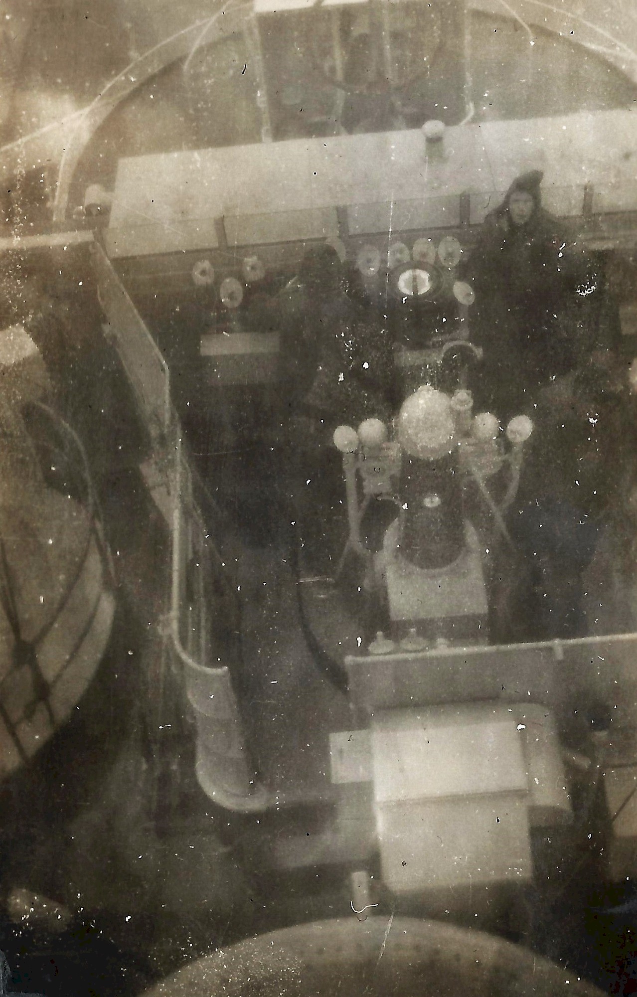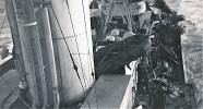 (11) Tarbutt and Callendar in hole in radar cabin (12) Callander,