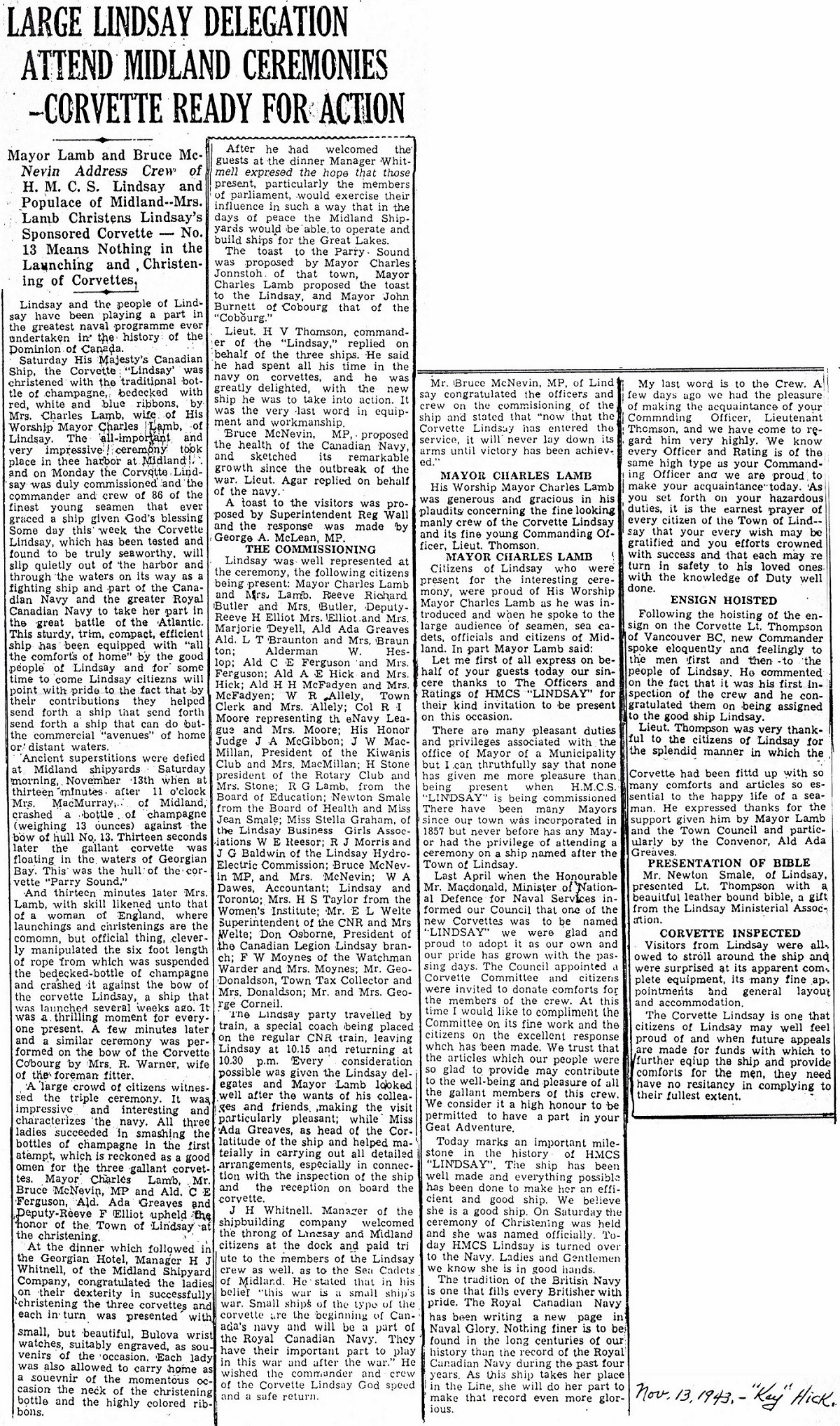 LINDSAY arrived at Halifax in Dec 1943 and late in Jan 1944,