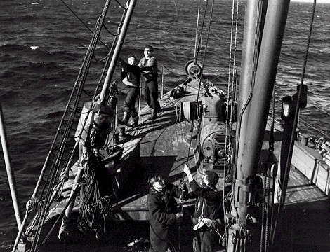 minesweeping cable aboard the minesweeper HMCS LLOYD GEORGE off Halifax