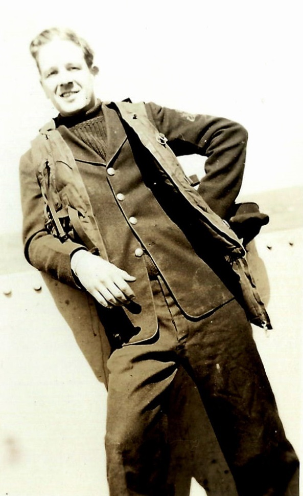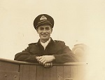 (JS01) Jack Shunk with friend. Jack is holding the ship's mascot (JS02) Jack Shunk (JS03) L-R: Rip, Harry and Jack