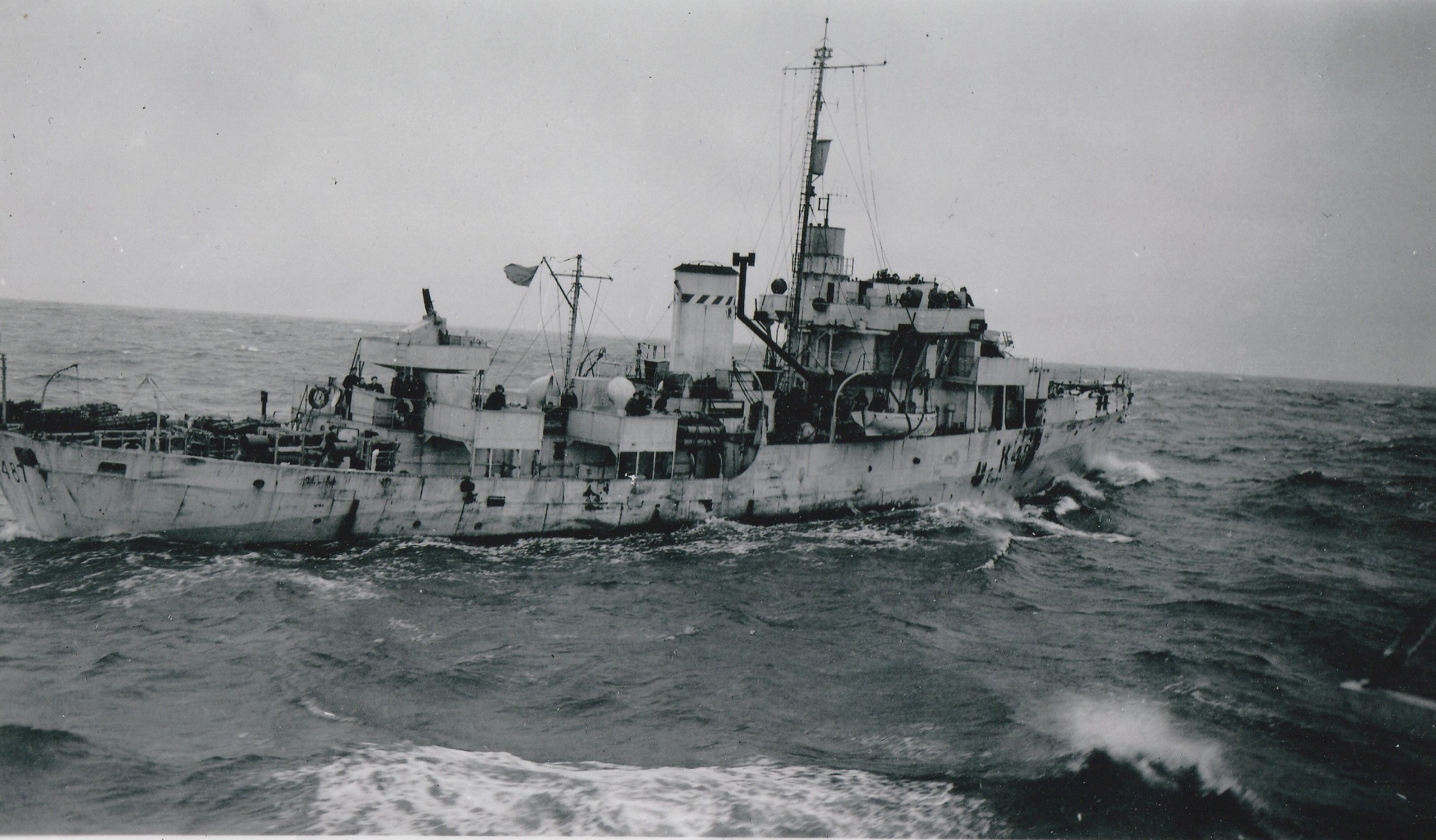 Built for the RN as HMS Candytuft, she was launched on 28 Sep 1943. Transferred to the RCN in Sep 1943 she was commissioned on 05 Jan 1944 as HMCS LONG BRANCH K487; named after a village near Toronto. In Apr 1944, following a month's workups at Tobermory, LONG BRANCH joined EG C-5 at Londonderry, and sailed to pick up her maiden convoy, ONS.233. She developed mechanical defects on the crossing and was under repair at St. John's for six weeks. She left St. John's 14 Jun 1944 to resume her duties, but returned from her next westbound convoy with the assistance of HM tug Tenacity. Repaired, she left St. John's ON 23 Jul 1944 to join HXS.300, the largest convoy of the war, and continued as an ocean escort until her final departure from "Derry on 27 Jan 1945. Arriving at Halifax on 11 Feb 1945, she commenced a refit on completion of which, in Apr 1945, she was assigned to Halifax Force for local duties. On 17 Jun 1945 she was paid off at Sorel for disposal. Sold for commercial use in 1947, she was renamed Rexton Kent II (later dropping the "II") and finally scuttled off the east coast in 1966.