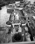 (LGB006) Looking aft from the mast of HMCS HUNTSVILLE K499 with HMCS LONG BRANCH K487 directly astern of her // Library and Archives Canada Photo, MIKAN No. 3398246