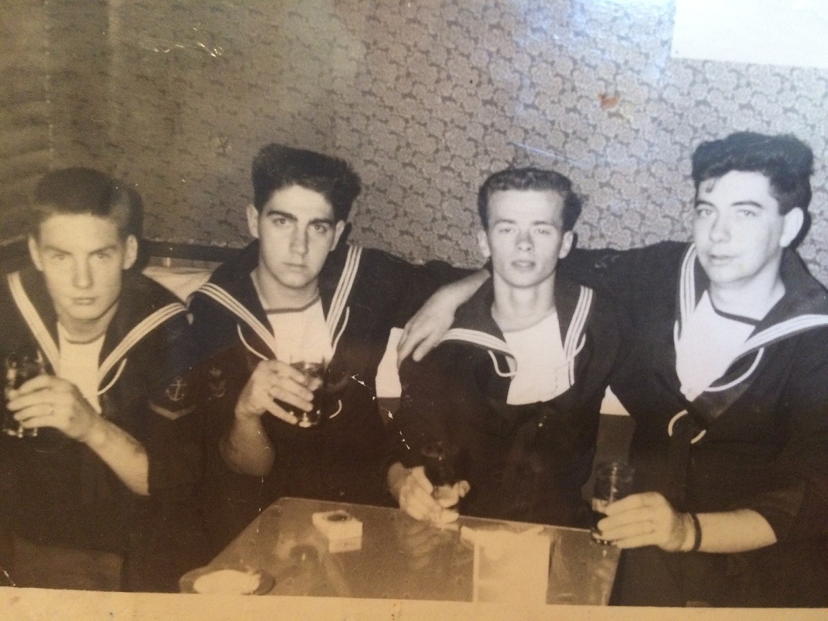 Old Sailors Night on HMCS MACKENZIE, 24 Jan 1979 (374) Running mates - Steve Hlasny, Ken Irvine, Freeman Abbott