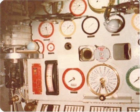 (GD01-GD03) Boiler room consol of HMCS MACKENZIE 261 Courtesy of Garth Davies