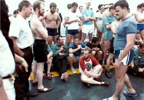 Old Sailors Night on HMCS MACKENZIE, 24 Jan 1979 (SH369) The boys are starting to feel mellow (SH370) Freeman Abbott, Steve Hlasny (SH371) The Engineers (SH372) Old Sailors night at it's close (SH373) Grant, Nestor, Ken Irvine, Steve Hlasny