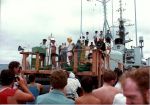 (SH375) HMCS MACKENZIE rescues two fishermen off Cape Flattery, May, 1979 (SH376) Mortar instruction on HMCS MACKENZIE, May 1979 (SH377) "They Work!" - HMCS MACKENZIE firing her mortars, May 1979 (SH378) Mortars Bombs Exploding (SH379) Committal ceremony for the ashes of a Chief Gunner. Piping party - CPO1 Coughlin, CPO2 Gunderson