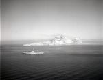 (MAG046) HMCS MAGNIFICENT // From the collection of Gordon Broster (MAG047) MAGNIFICENT in the straights of Gibraltar on the way to dropping off personnel and vehicles as part of the United Nations Emergency Force (UNEF) with the rock of Gibraltar in the background January 1957 LAC e010777391-v8 (MAG048) The Last Sunset - Cdr William Bremner salutes as the White Ensign is lowered at sunset on HMCS MAGNIFICENT for the final time // Source: CROWSNEST Magazine, Sep 1957