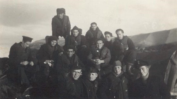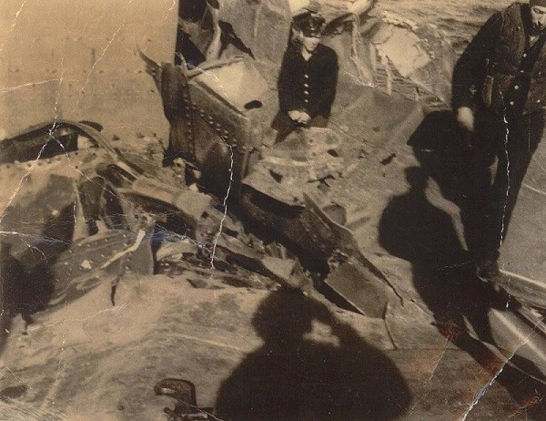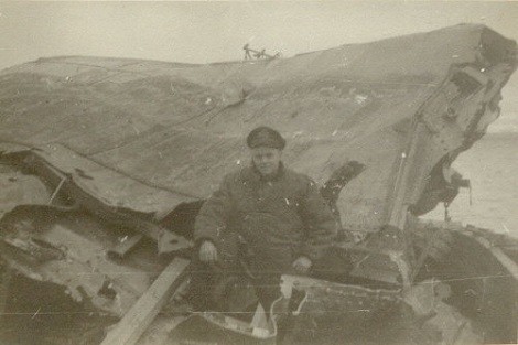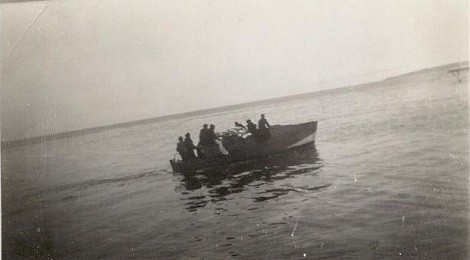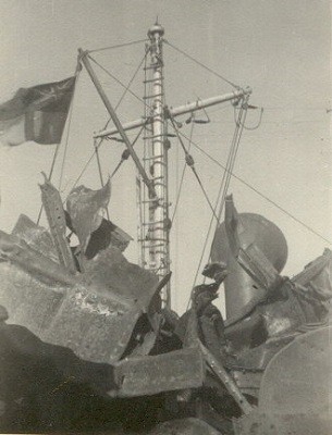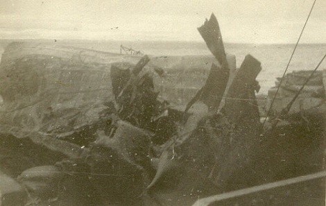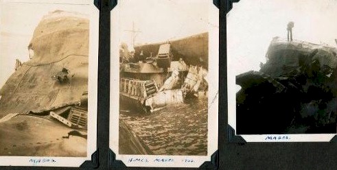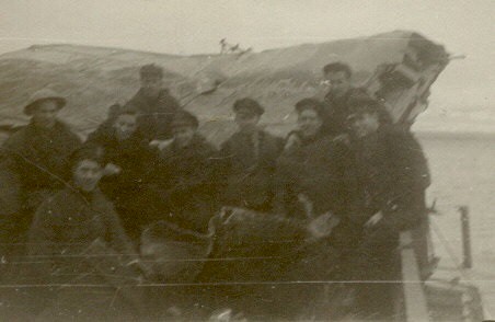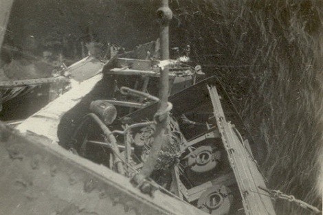 Magog crew members. Photo taken looking back at damage from 12 pound gun