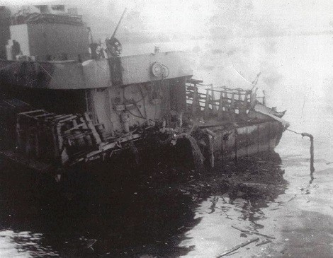badly damaged by U 1223 in the St. Lawrence River off Pointe des