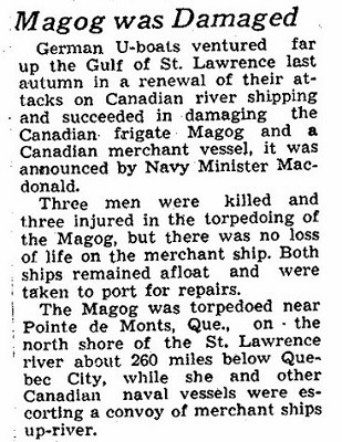 THE TORPEDOING OF HMCS MAGOG by Herb C.