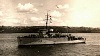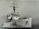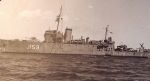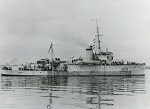 goes hard-a-port. circa 1943/43. Note the minesweeping gear on the extreme