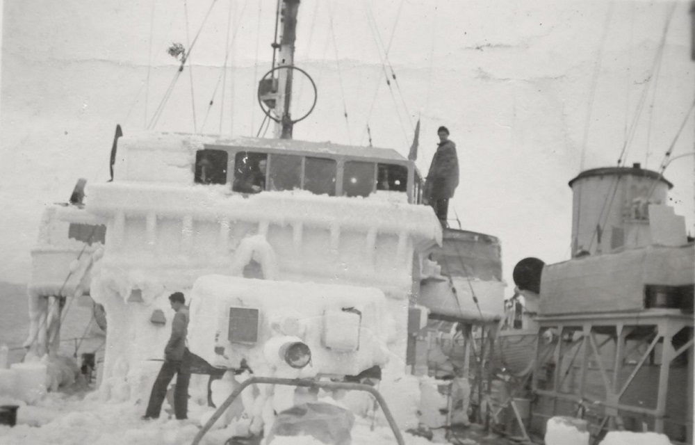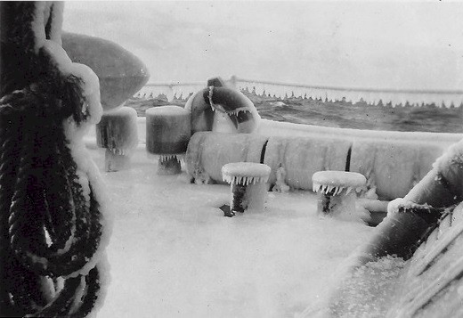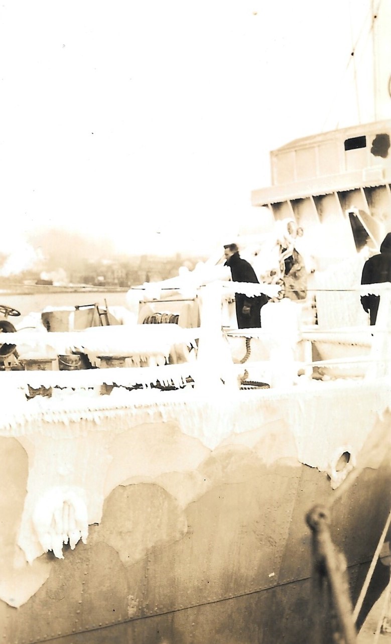 (LF03) HMCS MAHONE iced-up (LF04) Sailors on the sweep-deck of