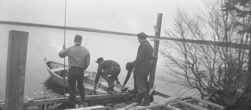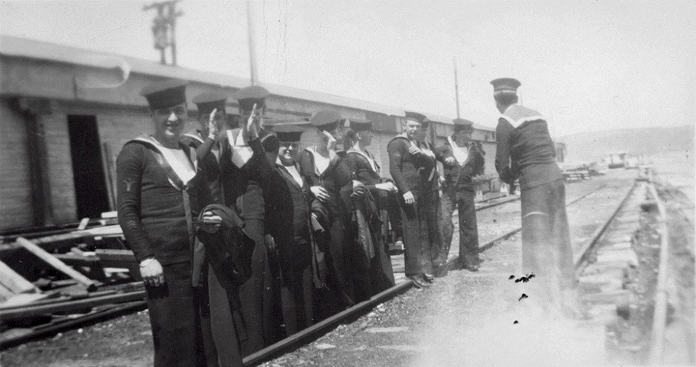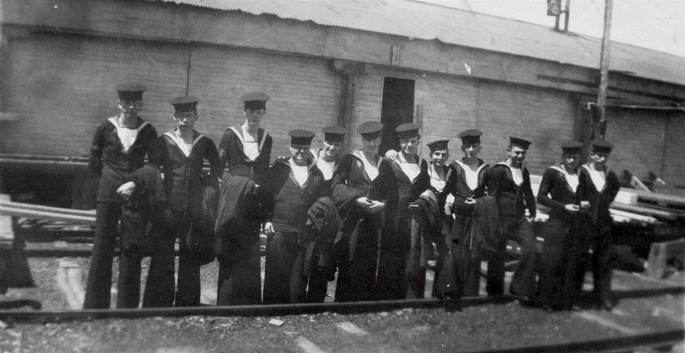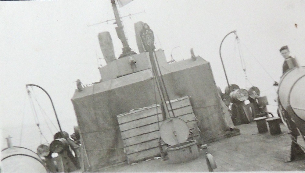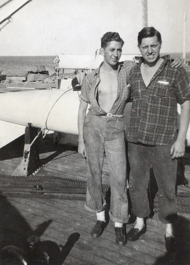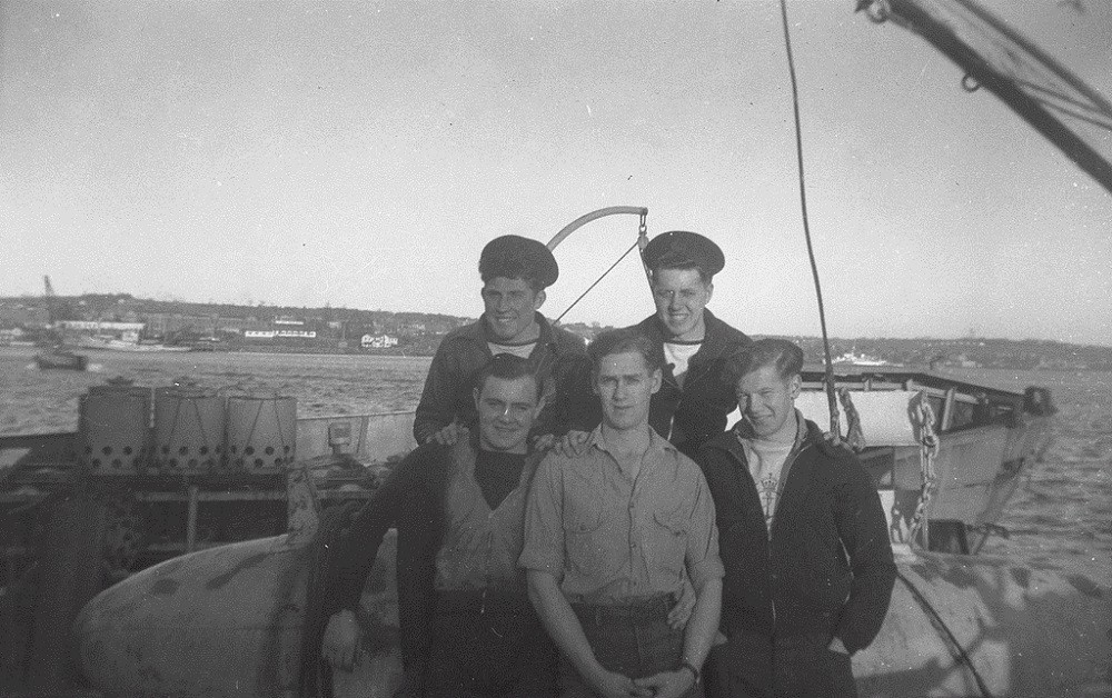 (LF06) Les Fontaine (left, sitting of paravane) and shipmates on