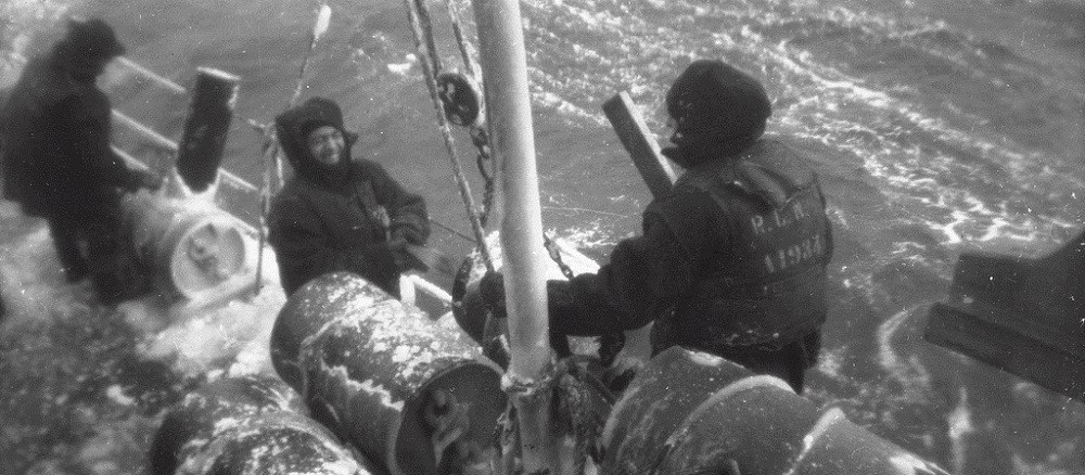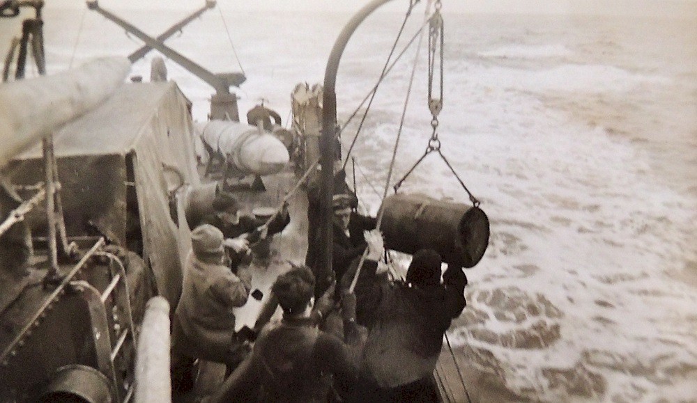 Re-loading a depth charge at sea - HMCS MAHONE circa 1942/43