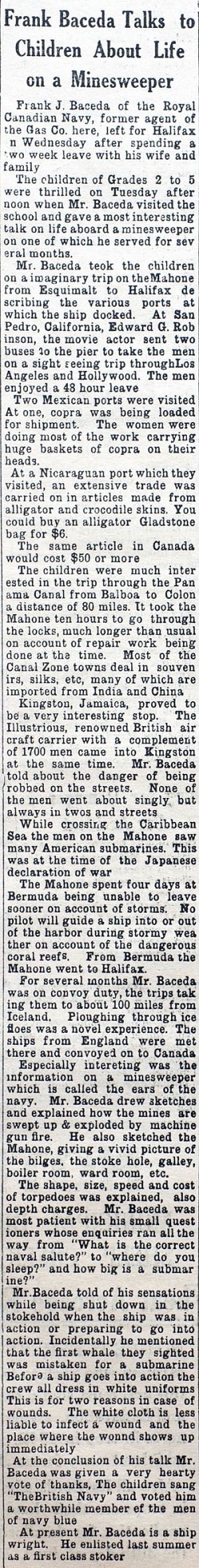 to Halifax a month later. MAHONE was paid off at Halifax on 06 Nov 1945, and laid up at Shelburne. In 1946 she was placed in