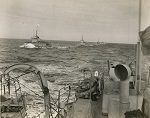 Pendant number on lead ship partially visible. Possibly HMCS