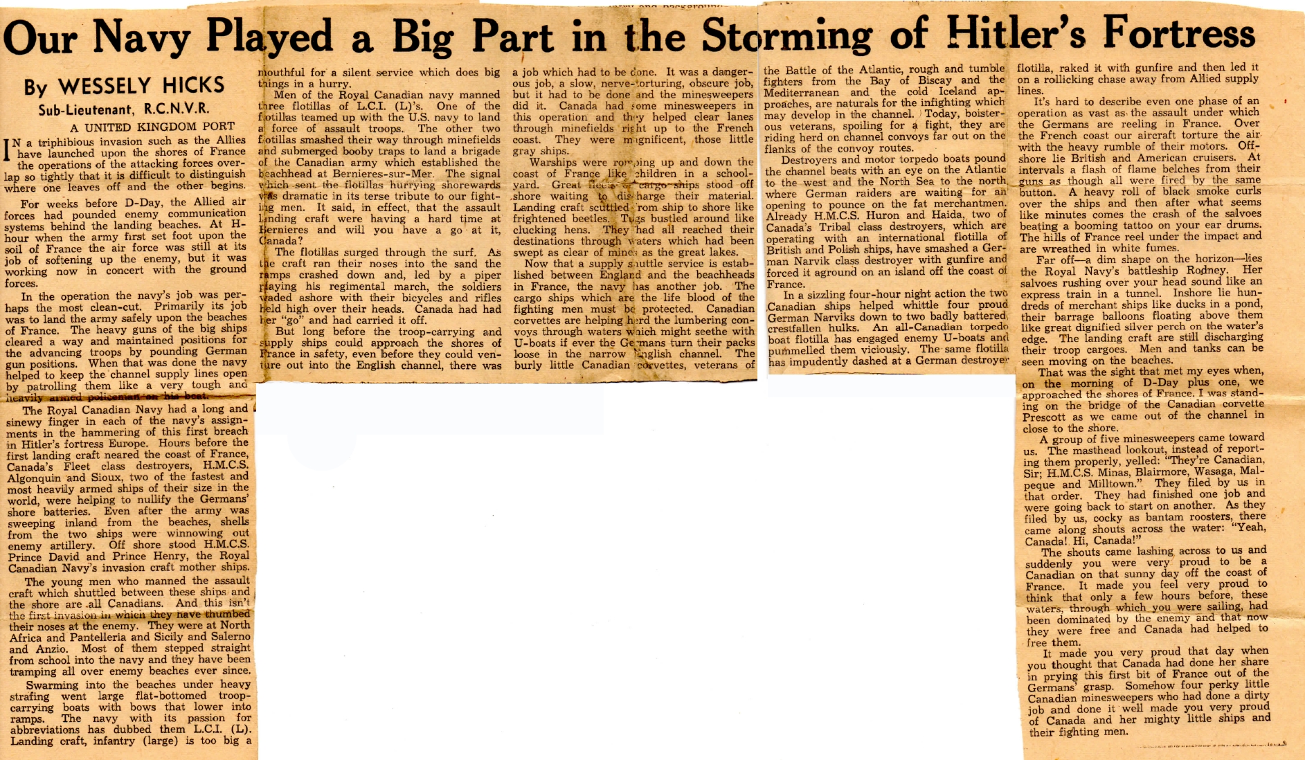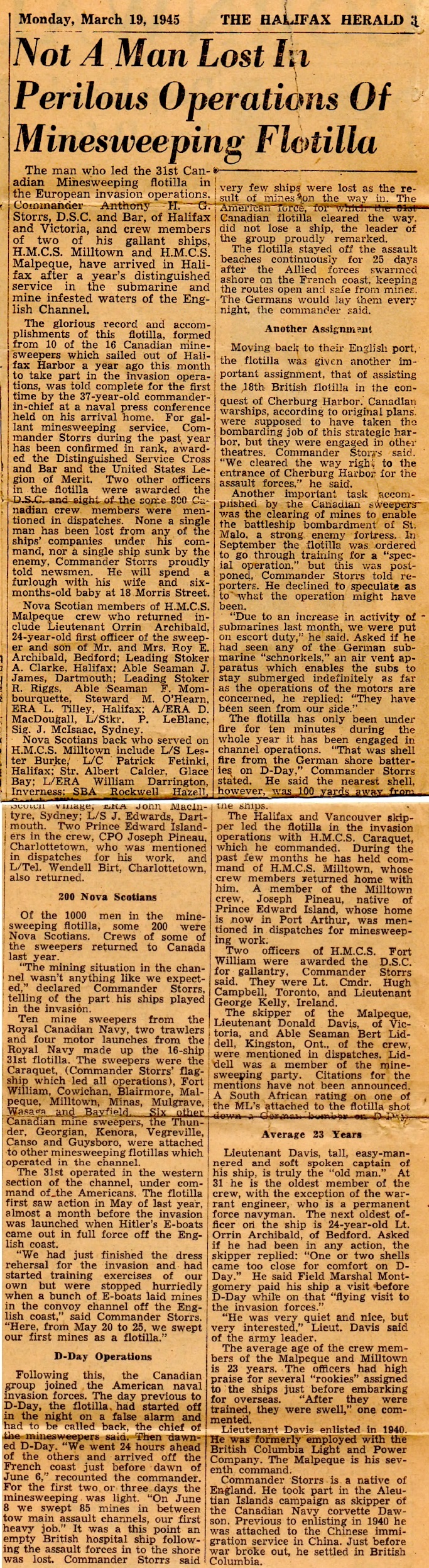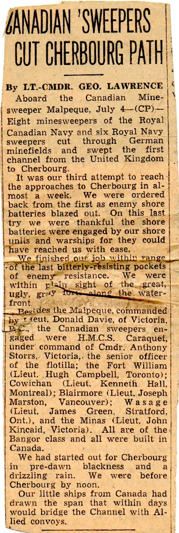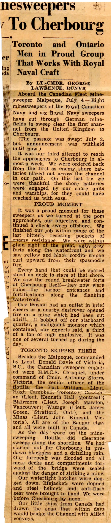 on HMCS MALPEQUE during the Cherbourg operations.