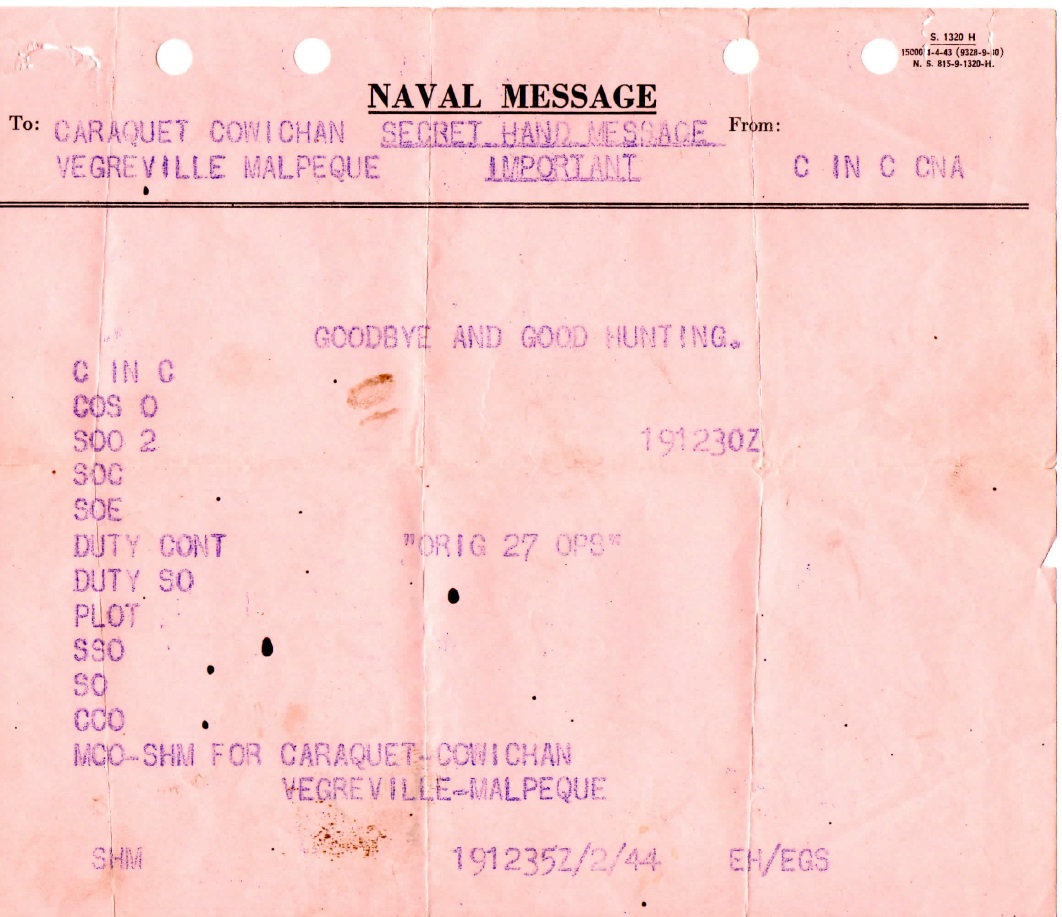 Message sent to HMCS Caraquet, HMCS Vegreville,