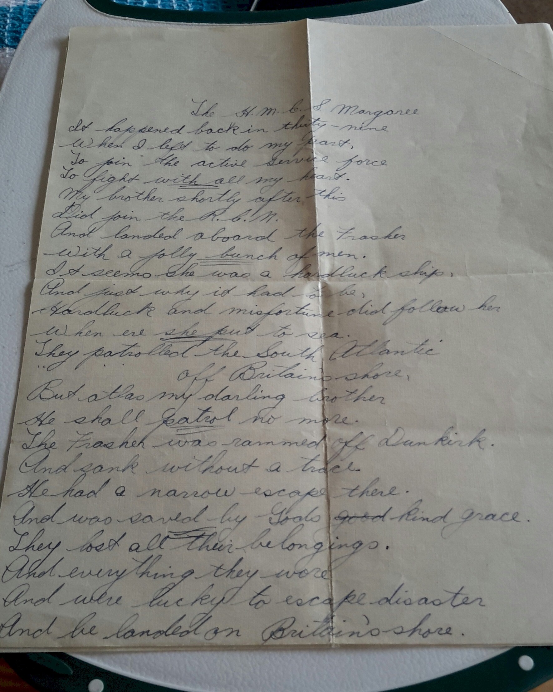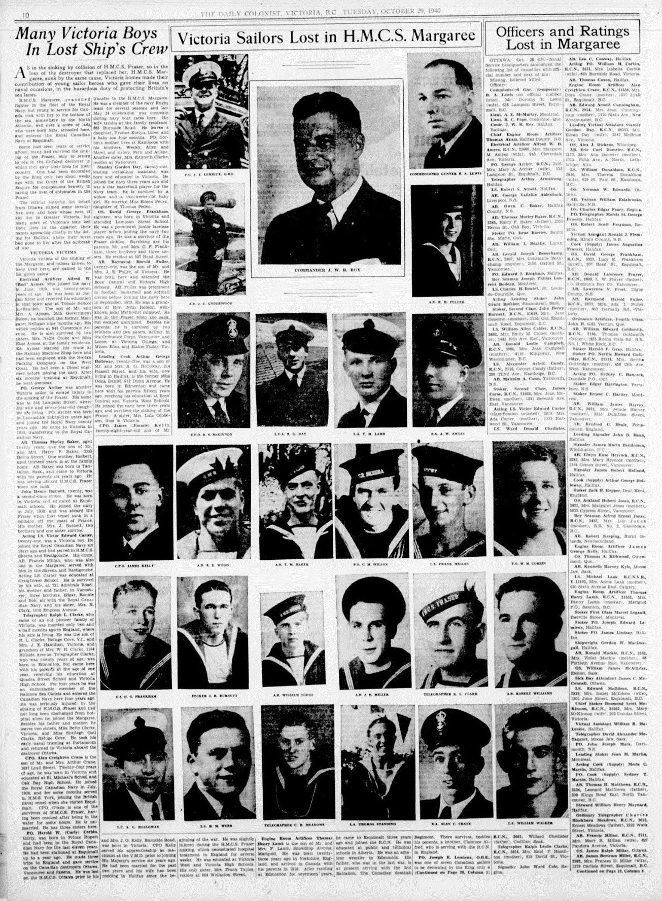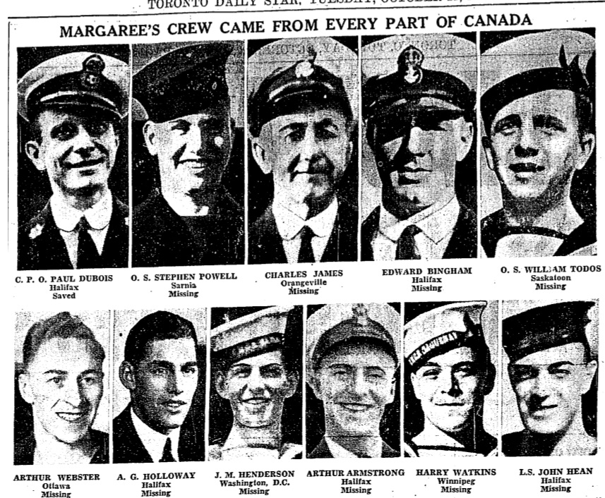 by the brother of a sailor lost when HMCS Margaree was sunk on 22 Oct