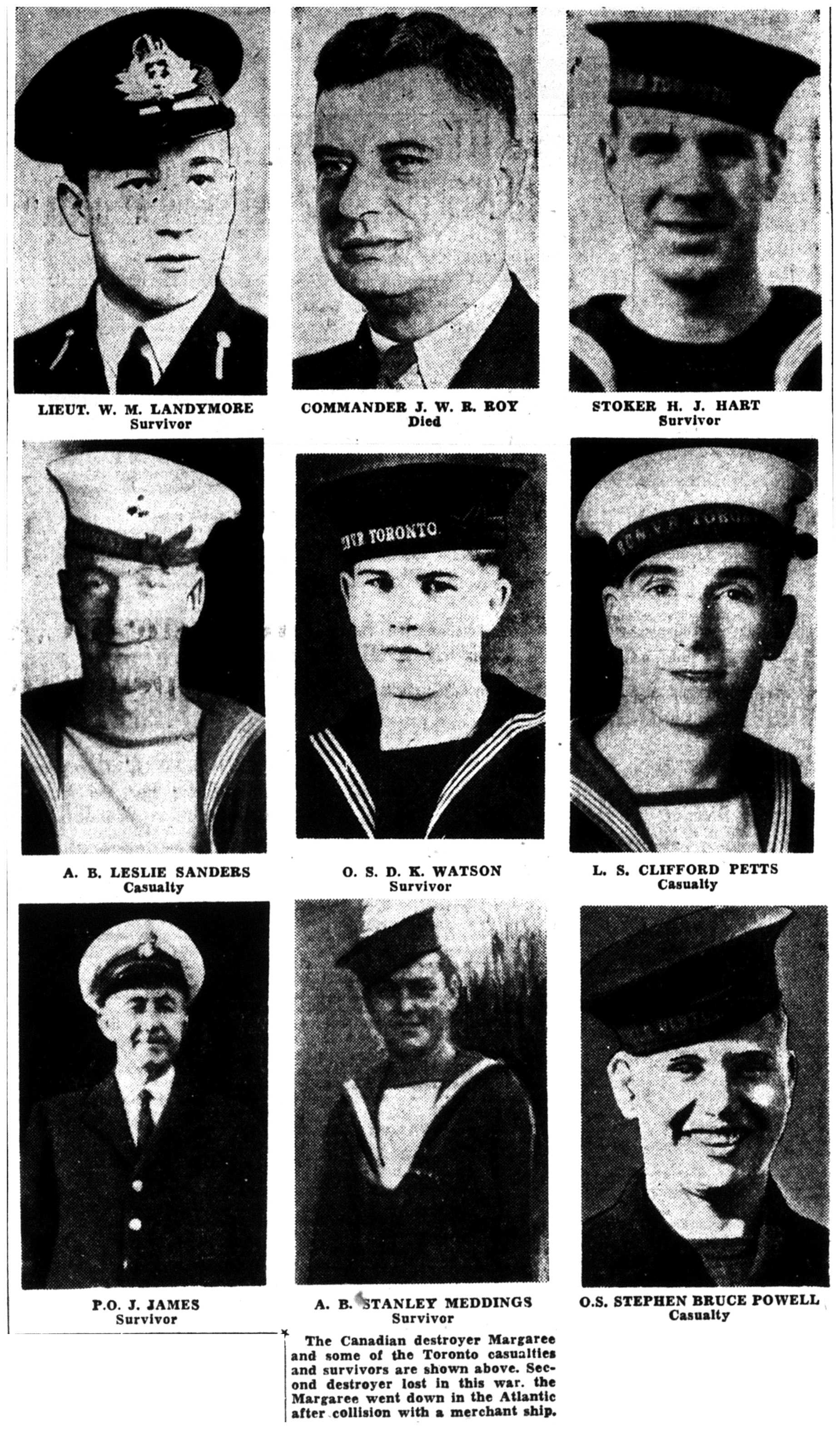 HMCS Margaree before it sank. Men were either killed outright on the forward