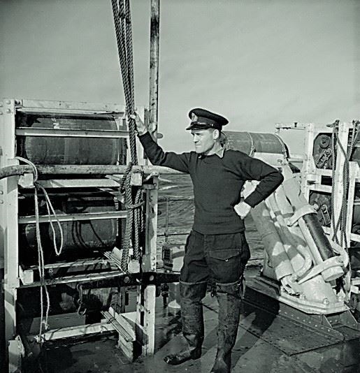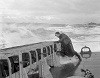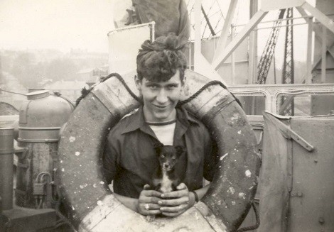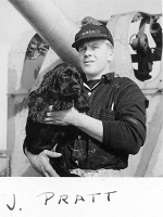 J. Pratt with ship's mascot aboard HMCS MATANE K444
