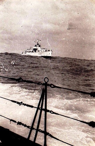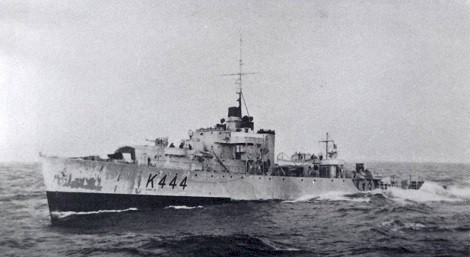 HMCS MATANE K444 in position 52-09 N, 19-07 W. Of her crew of 51