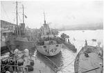 (WB73) Photo caption says "Corvette leaving Sydney Harbour" - however, background looks more like the scenery along the River Foyle  (WB74) "Busy harbour" - St. John's Newfoundland.  HMCS BADDECK K147 and RN sub P554. Taken from HMCS MATAPEDIA K112