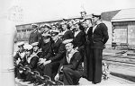 (WB33) James Hamilton Irving (standing, centre) on HMCS MATAPEDIA K112.  Remainder of sailors unknown