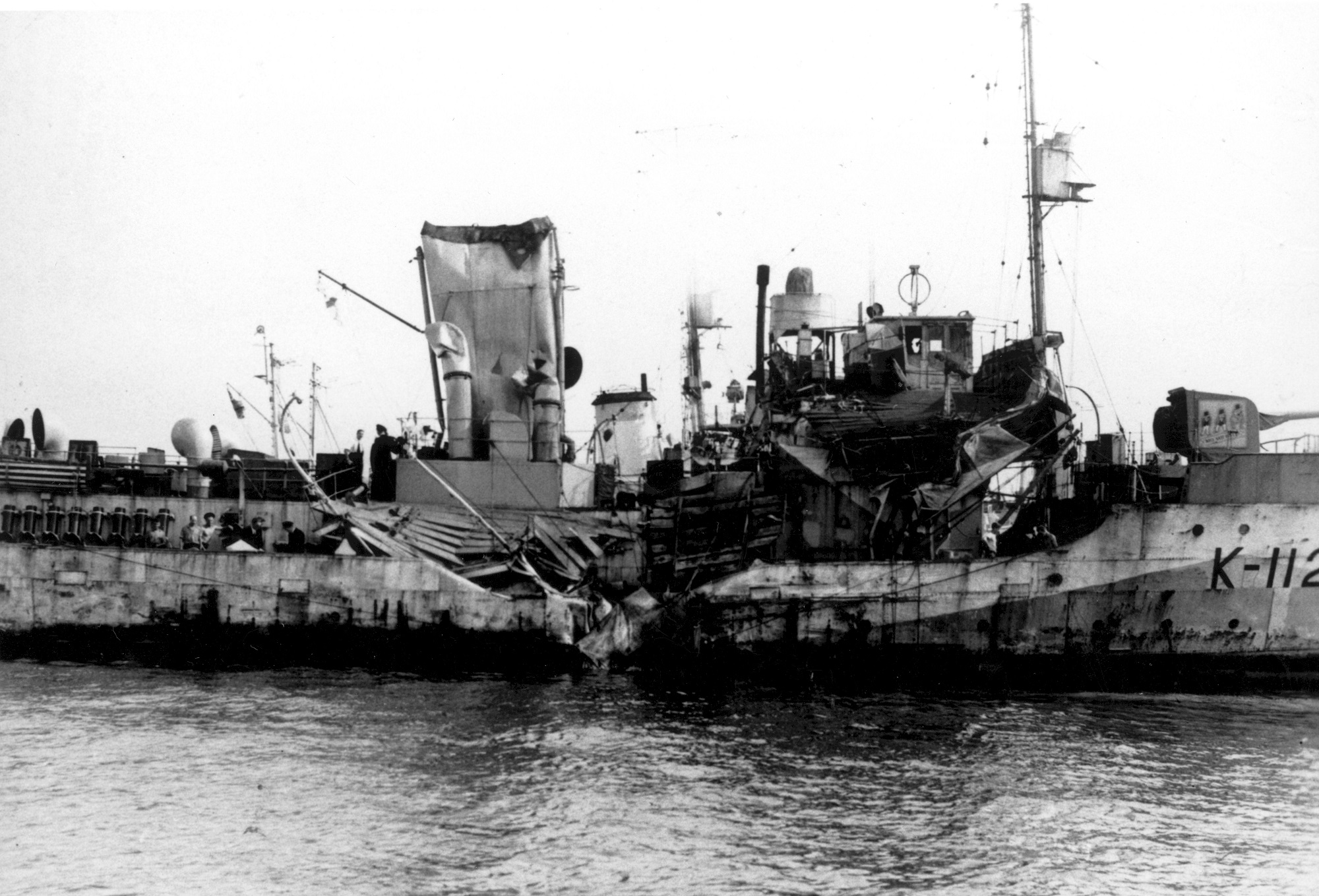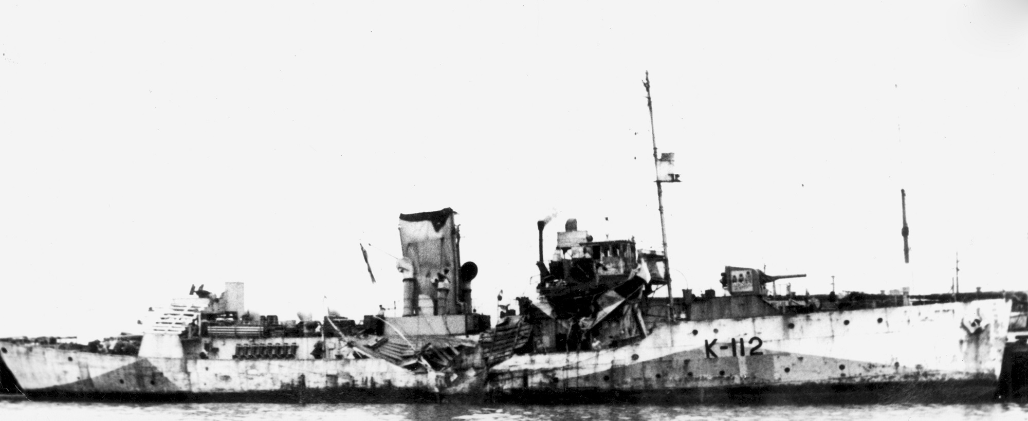 HMCS MATAPEDIA K112 after she was rammed by off Sambro Lightship by SS Scorton on 08 Sep 1943