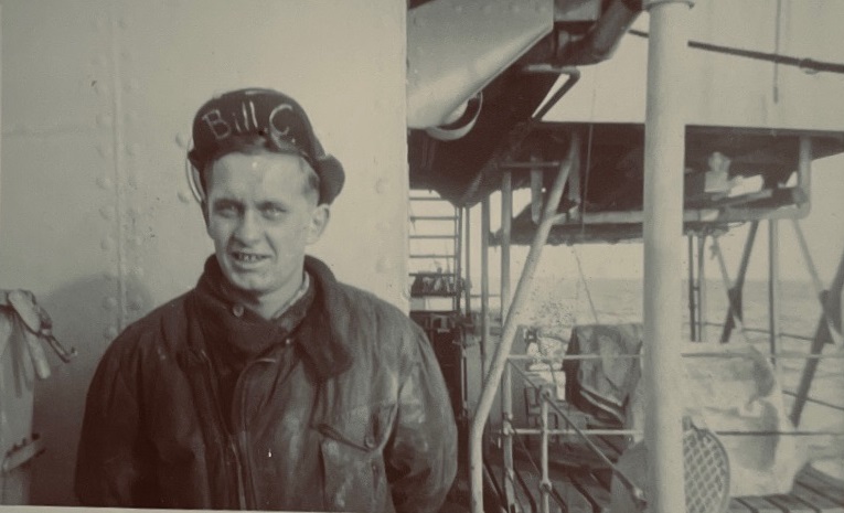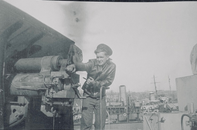 William Cummings, looking aft, sitting just forward of the after gun mount