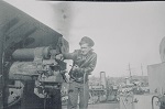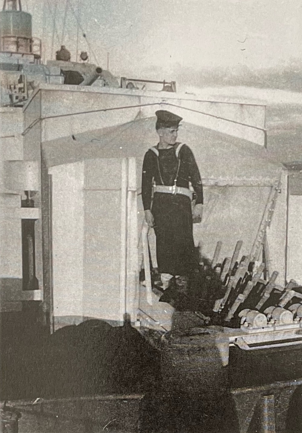 William Cummings, on duty as Quartermaster, standing behind the Hedgehog