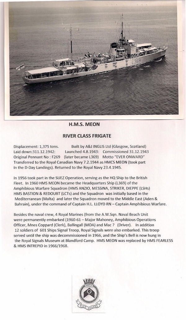 Gulf, before being paid off in 1965. On 14 May 1966 HMS MEON (L369) arrived at Hughes Bolckow, Blyth for breaking up.