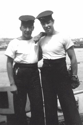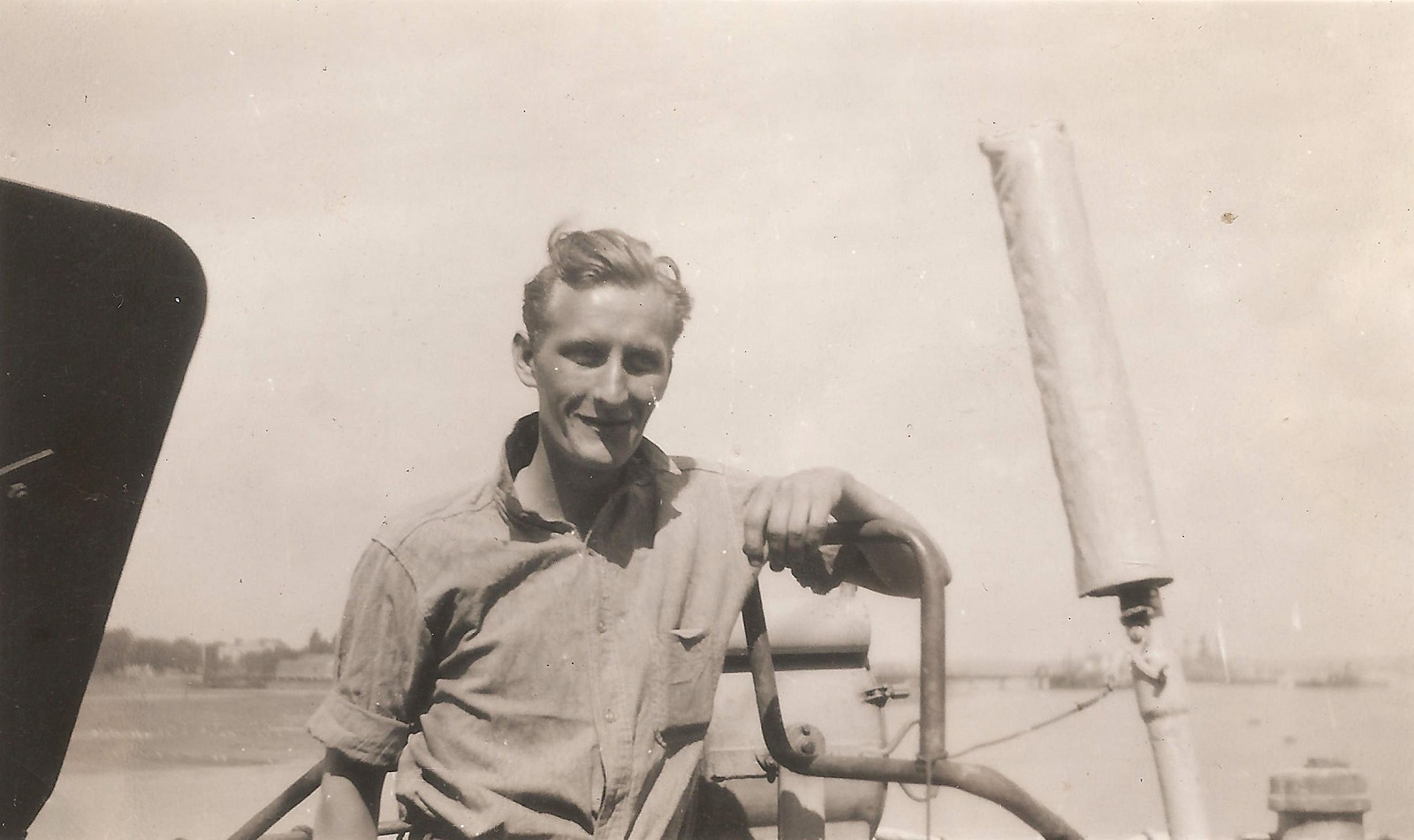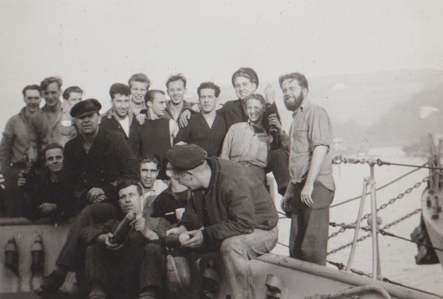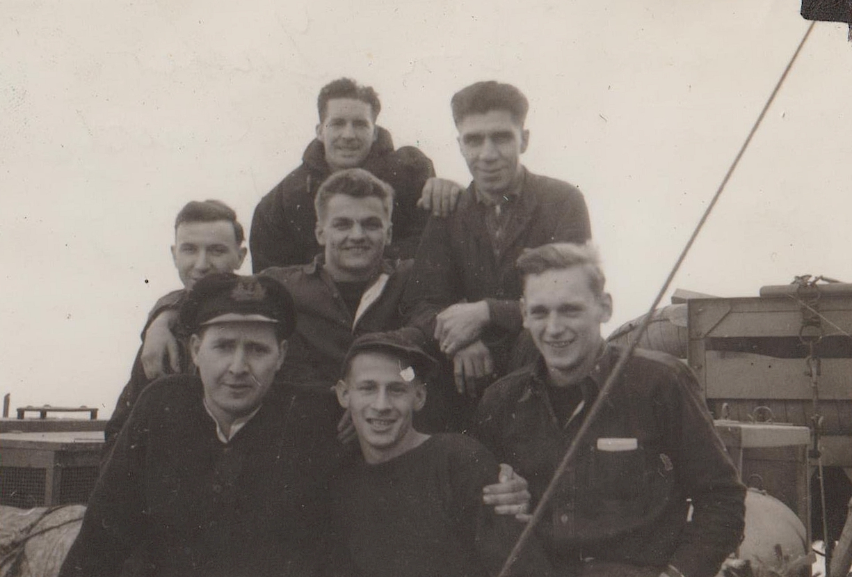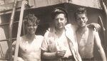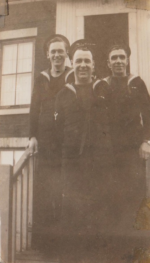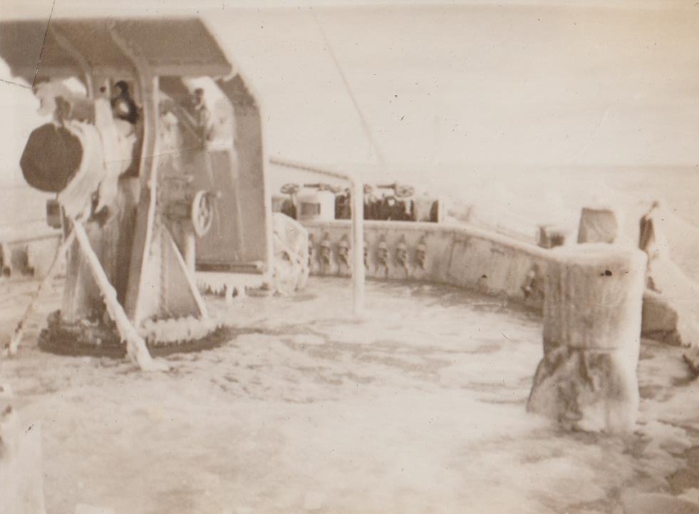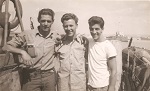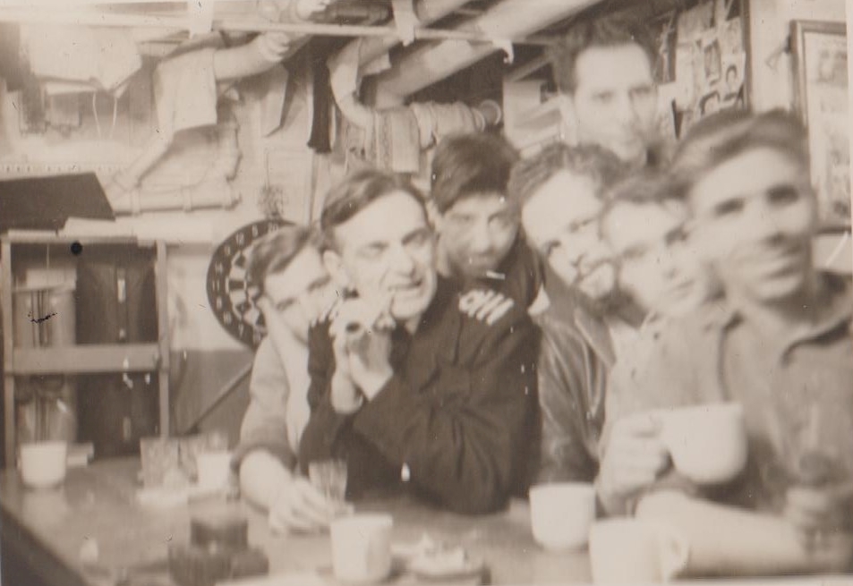 (HH06) Gordon Albright, Thomas Cox and Roland Chalifoux on HMCS MILLTOWN as Portsmouth, England (HH07) Gordon M. Albright on HMCS MILLTOWN (HH08) Harold Holman (standing) and Lawlor on the jetty by HMCS MILLTOWN (HH09) Harold Holman on HMCS MILLTOWN (HH10) HMCS MILLTOWN Christmas card