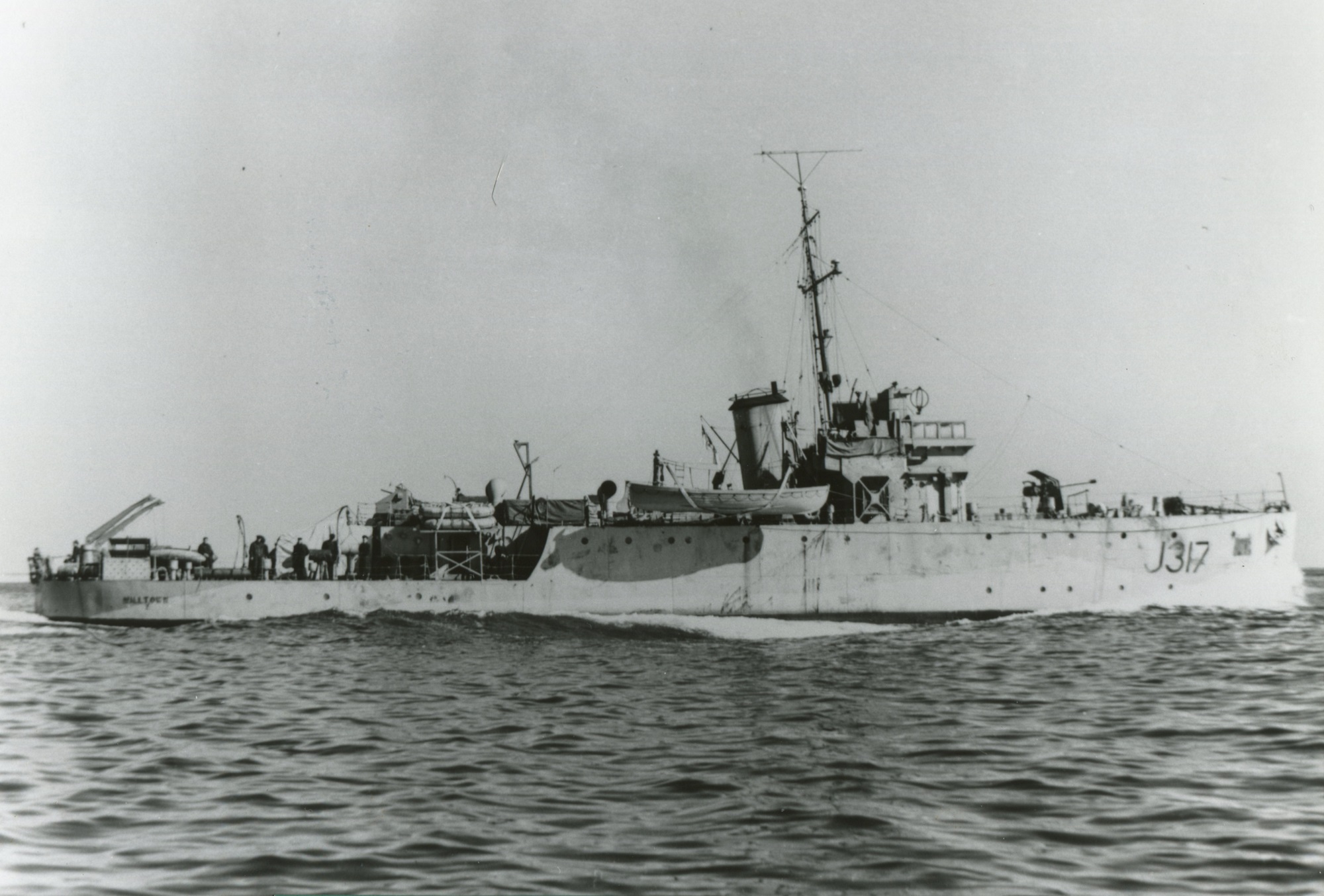 Commissioned on 18 Sep 1942 at Port Arthur, MILLTOWN arrived at Halifax on 27 Oct 1942 and, after working up, joined Halifax Force in Dec 1942. In March 1943, she transferred to WLEF and in Jun 1943, to Gaspé Force. In Nov 1943, she returned to Halifax Force until 20 Feb 1944, when, with BLAIRMORE, FORT WILLIAM and MINAS, she sailed via the Azores for Plymouth, arriving on 08 Mar 1944. She was present on D-Day with the 31st Minesweeping Flotilla. She returned to Canada to refit at Saint John, N.B., from Mar to Jun 1945, leaving Halifax 23 Jun 1945 for Plymouth via the Azores. She left Plymouth for home on 21 Sep 1945 and was paid off on 16 Oct 1945 at Sydney and laid up at Shelburne. MILLTOWN was placed in strategic reserve at Sorel in 1946, but re-acquired by the RCN in 1952 and kept in reserve at Sydney until Feb 1959, when she was sold for scrap.