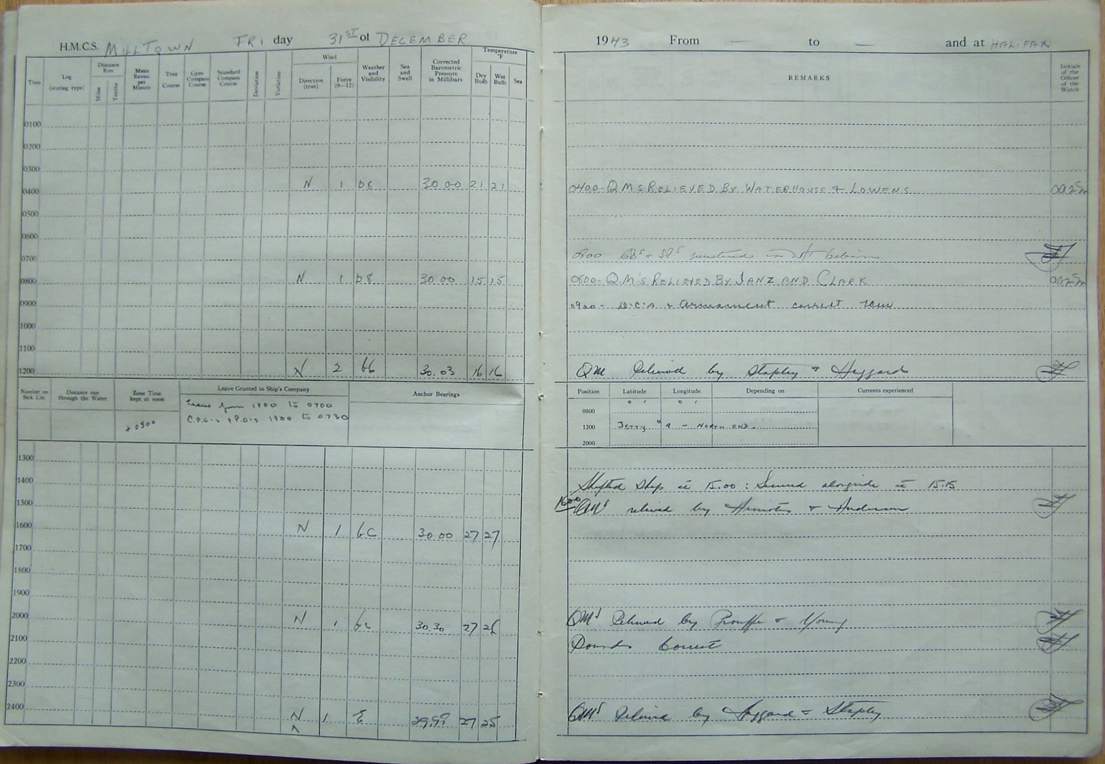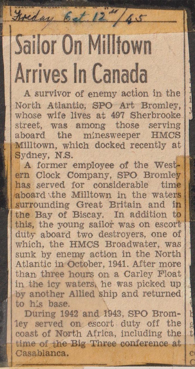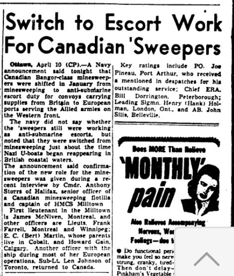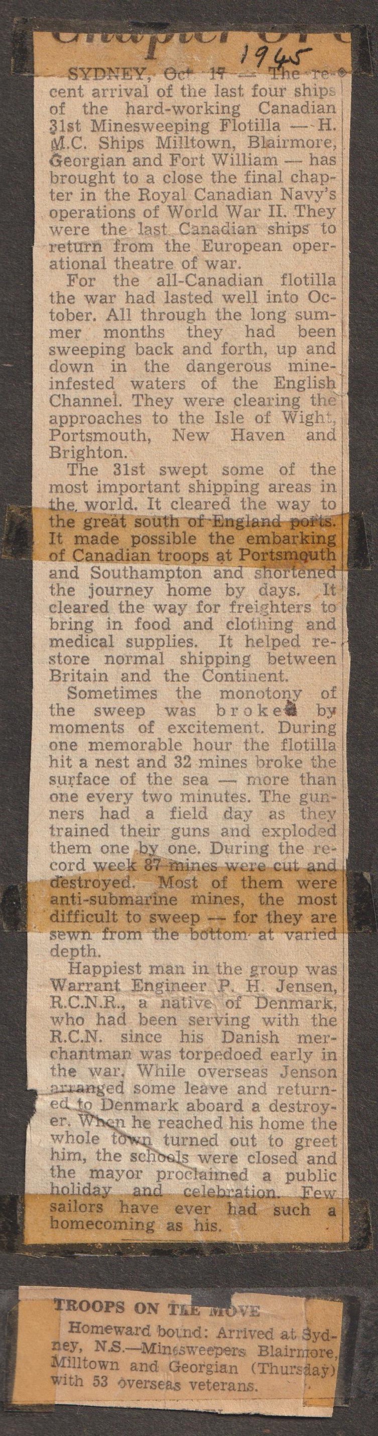 (NR45) = crew members listed on HMCS MILLTOWN Nominal Roll dated 21 Jul 1945