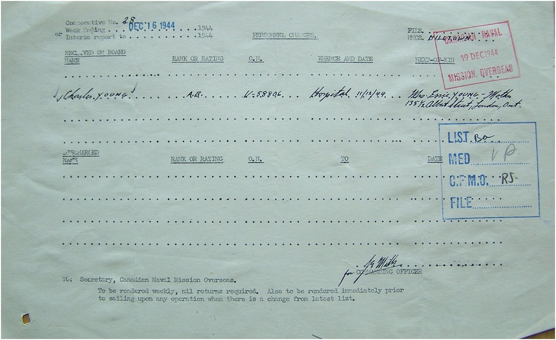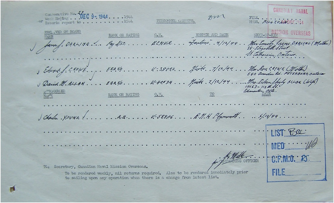 HMCS MILLTOWN J317 Nominal Roll for 21 Jul 1945