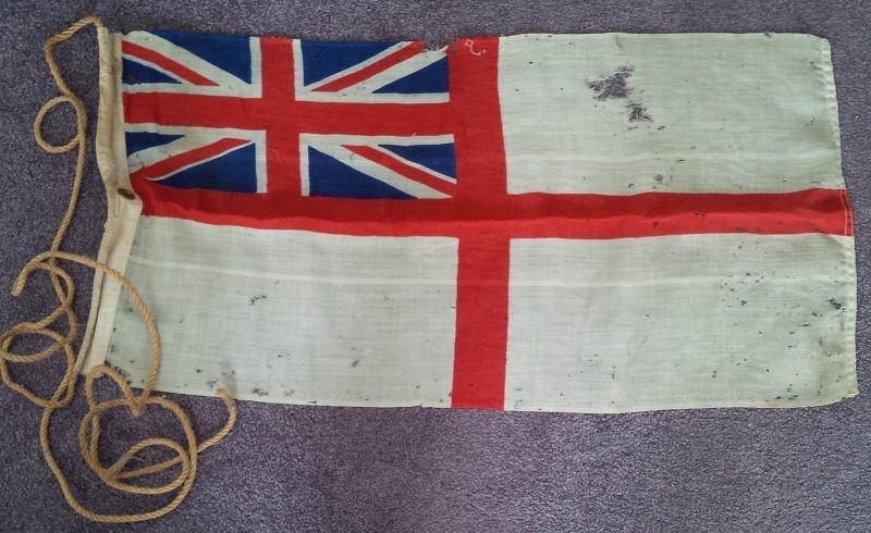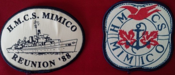 (RSG001) Lt R. S. Graves on HMCS MIMICO K485 (RSG002) Last ensign that was flown on HMCS MIMICO K485 (RSG003) THE KING GOD BLESS HIM - HMCS MIMICO 1942-1945 (RSG004) Two souvenir jacket patches from the 1988 HMCS MIMICO crew reunion, Oakville, Ont. From the collection of Robert S. Graves, Lieutenant, RCNVR. Courtesy of Stephen Graves