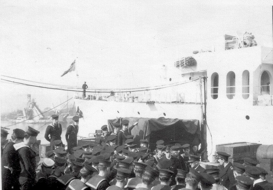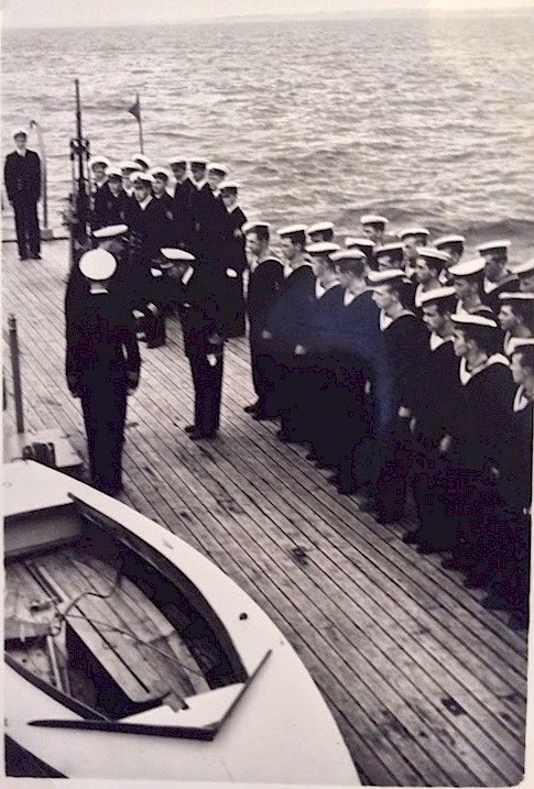 Norman Dick, back row, centre (tallest sailor).  His nickname was "this-above-all"