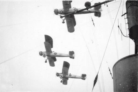 Historical note: The Fairey Swordfish were the type of bi-plane used in the attack on the Italian Fleet at Taranto Harbour and also were the planes that made the cripplying torpedo attack on the Bismarck